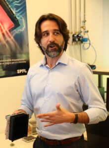Prof. Elison Matioli is working in between these two extremes, at the level of computer components. “Our vision is to contribute to the development of an integrated chip – a single unit for powered electronics where you have loads of devices integrated – smaller and more energy-efficient than anything that can be achieved currently.”